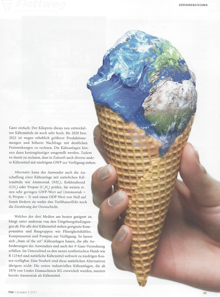 Auswirkungen der F-Gase-Verordnung. Unternehmen, die Kälte für den Produktionsprozess benötigen, müssen sich mit Blick auf die F-Gase-Verordnung bei der Planung, Anschaffung und den Service von Kälteanlagen auf neue Regelungen einstellen. (C) den vollständigen Beitrag finden Sie in der Fachzeitschrift „P&A Perspektive Prozessindustrie“, Ausgabe 06-2017.